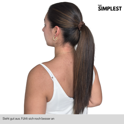 Weniger Haarbruch, geschmeidigere Spitzen und gezähmter Frizz – ganz ohne Extra-Aufwand. Einfach binden und die Seide wirken lassen. Deine Haare werden es dir danken! 💫